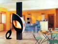 4. Камины в стиле хай-тек перевернули с ног на голову все известные стандарты в оформлении и конструировании. Исключительно урбанистические, они приветствуют и абсолютизируют технологические блага цивилизации, культивируя идею эстетизации техники. Минимализм и функциональность объединяются с авангардностью и нетрадиционностью. Камины хай-тек зачастую необычной формы – треугольной или шарообразной. Пик оригинальности – камины, висящие в воздухе. Вся конструкция камина буквально парит в воздухе, соединяясь с потолком только тонким длинным дымоходом.