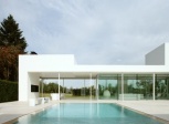 И еще один белый дом с простыми лаконичными формами и обширным использованием остекления. Внимание в нем привлекает не это, а расположение неподалеку от бассейна поистине огромной скульптуры, изображающей девушку в сложной акробатической позе.
