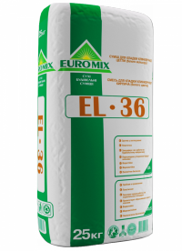Смесь «EUROMIX «EL-36» предназначена для возведения лицевых фасадов из клинкерного кирпича, может применяться для кладки керамического и силикатного кирпича, керамического блока и камня, бутового камня и бетонных блоков, а также для кладки стен, подвалов и фундаментов. Цвет- белый.